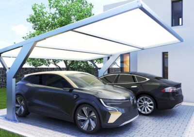I teli microforati agiscono come scudo termico, ideali per ombreggiare e proteggere dalla grandine, garantendo la permeabilità della copertura. I teli sono ancorati alla struttura con un sistema di autotensionamento, in modo da offrire la massima resa estetica e funzionale.