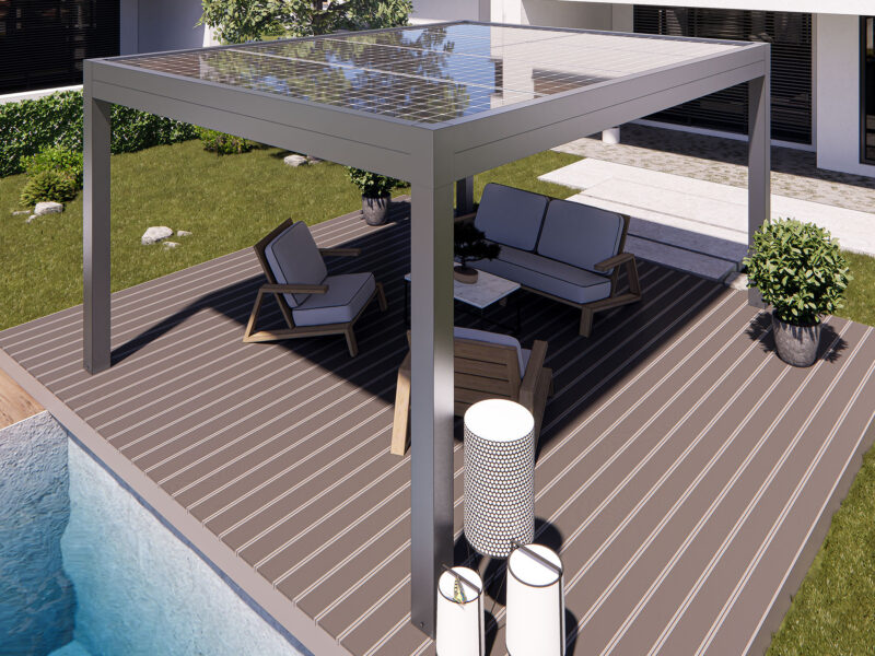 Il sistema di fissaggio viene effettuato mediante un sistema proprietario PERGOSOLAR.